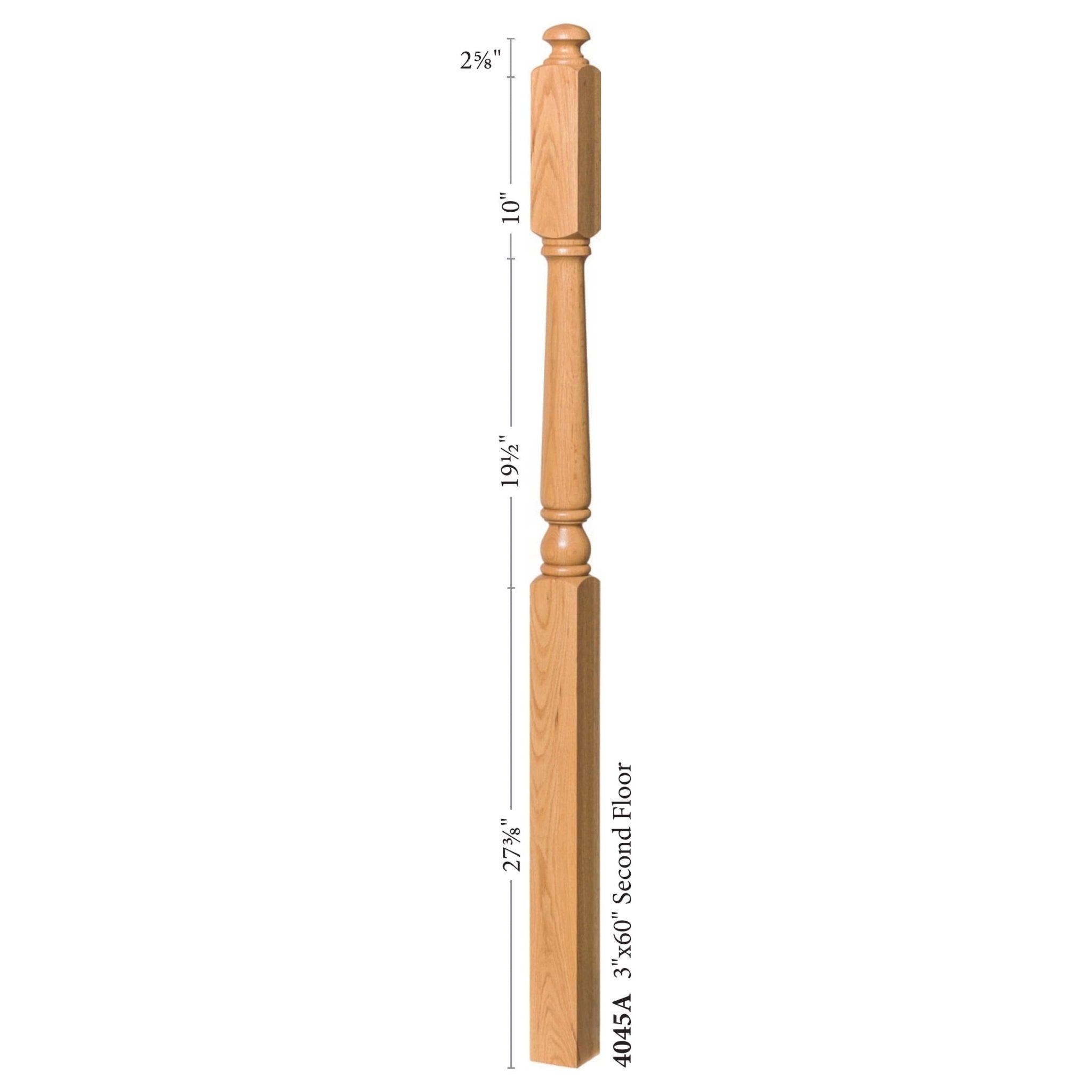 H4045A - Colonial 3" x 60" 10" Long Block Turned Newel (stocked in Red Oak, Poplar, Soft Maple, and American Cherry)