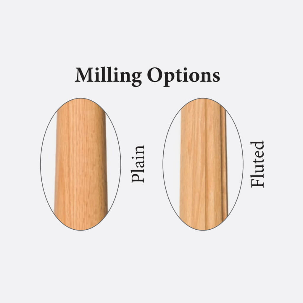 NOTE: The photo here shows the plain version of the newel. Please refer to the "Milling Options" photo for a general example of the Fluting that will be seen in the middle, turned portion of this newel, if you order the Fluted style.