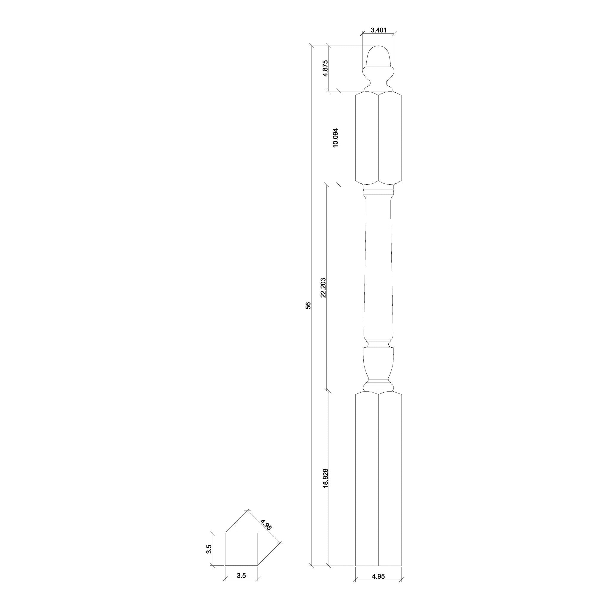H3030 - Bunker Hill 3-1/2" x 48" 3030 Turned Newel w/ Acorn Top