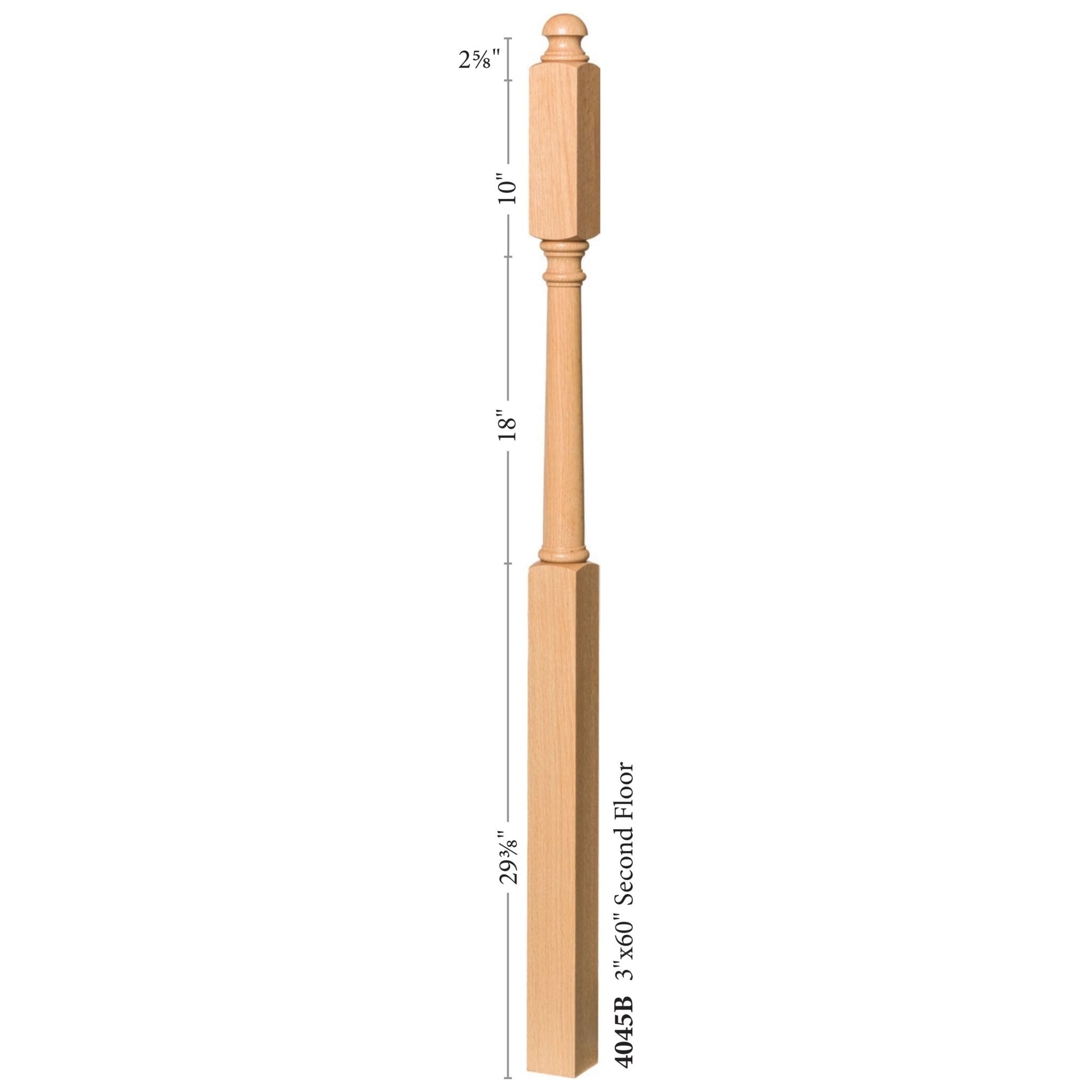 H4045B - Colonial 3" x 60" 4045B Turned Newel (stocked in Red Oak, Poplar, Soft Maple, and American Cherry)