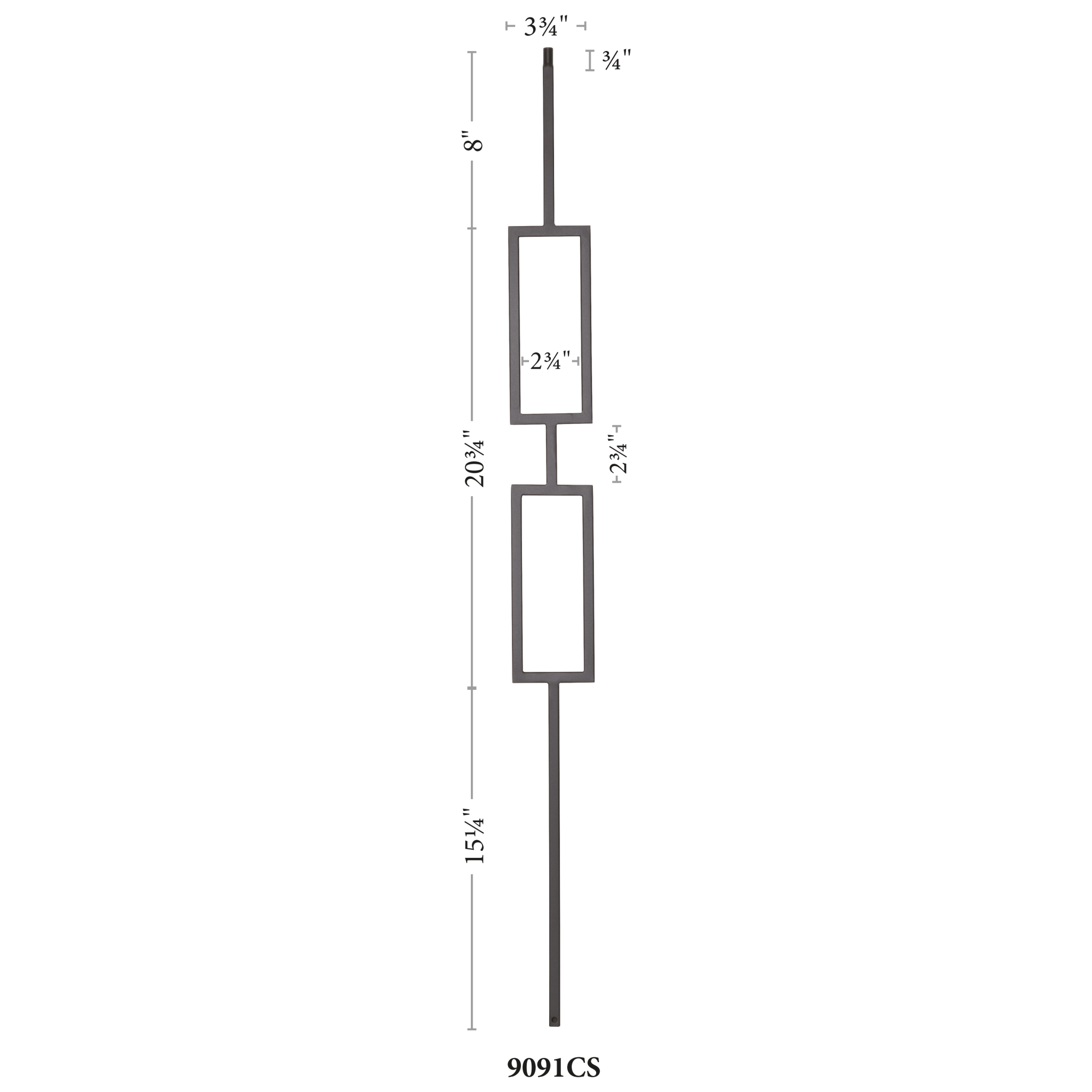 H9091CS - Contemporary Series 1/2" Square 3-3/4" x 44"H Double Rectangle Hollow Iron Baluster