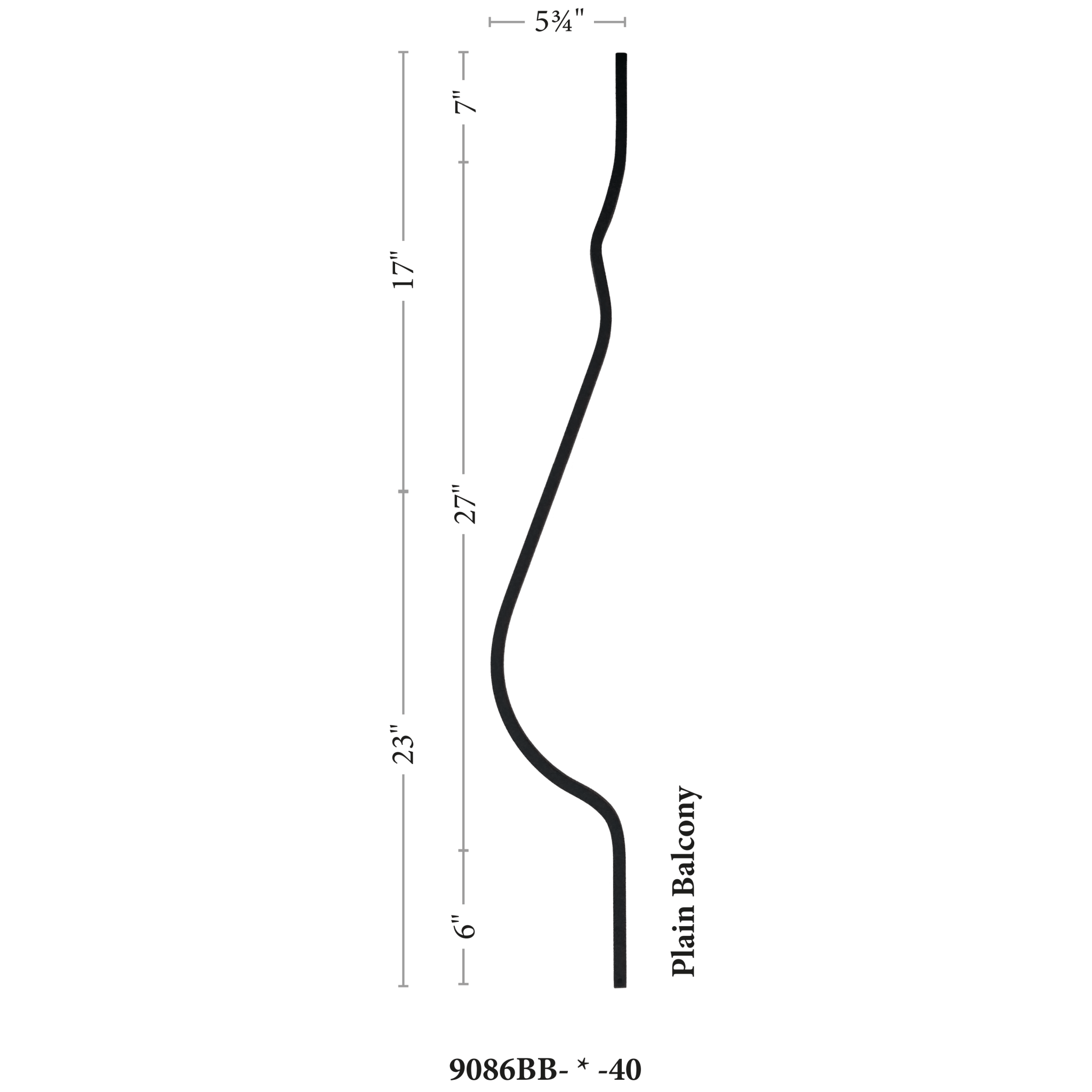 H9086BB - Belly Series 1/2" Square x 40"H Belly Hollow Iron Baluster