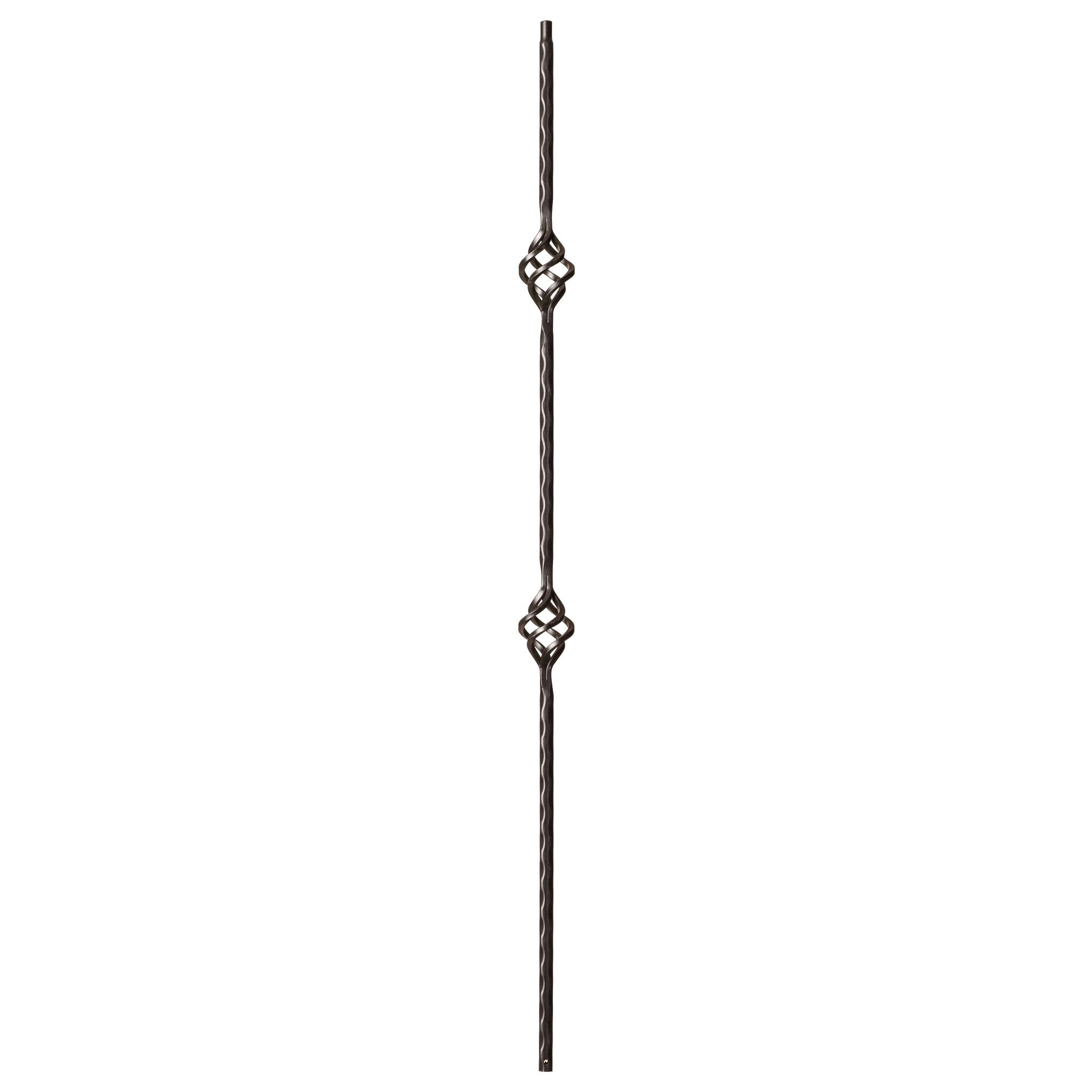 H9028HE - Hammered Edge Series 9/16" Square x 44"H Double Basket with Hammered Edge Hollow Iron Baluster