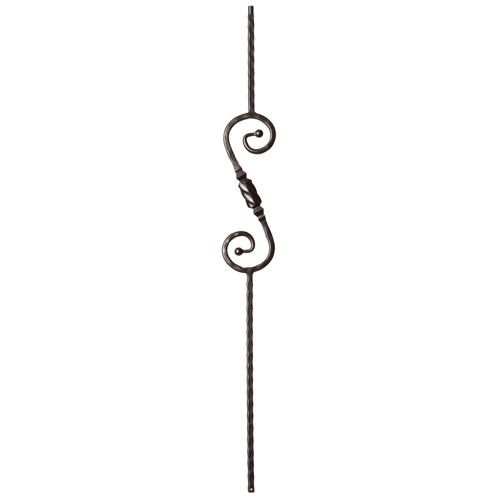 H9047HF - Hammered Face Series 9/16" Square x 44-3/32"H 5" x 14.5" "S" Scroll and Knob with Hammered Face - Hollow Iron Baluster