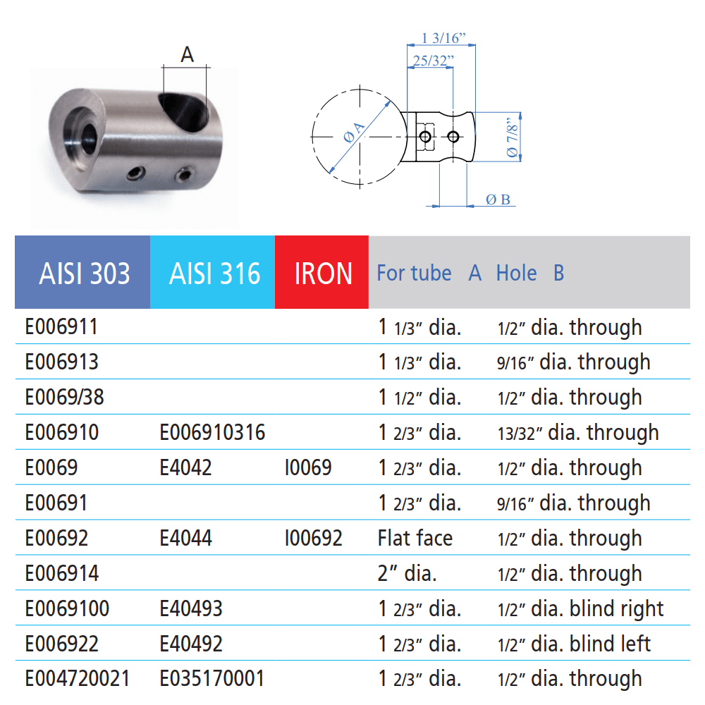 1/2" Dia. Round Bar Holder for 1 2/3" Round Newel Post or Flat Face for Square Newel Post