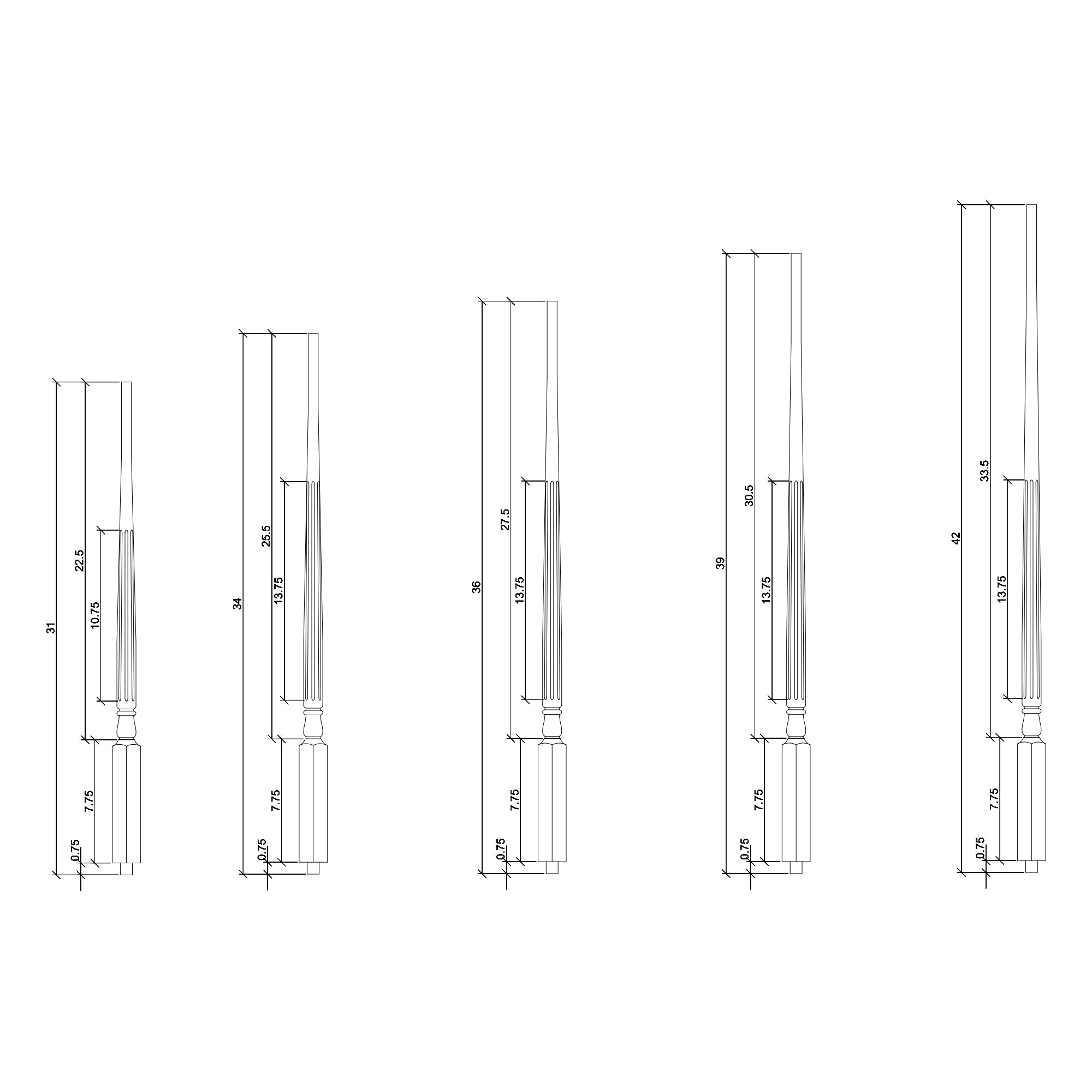 Note: The length of the flutes is the same for all sizes, except for the 31-inch baluster which has flutes 1 inch shorter than the other sizes.