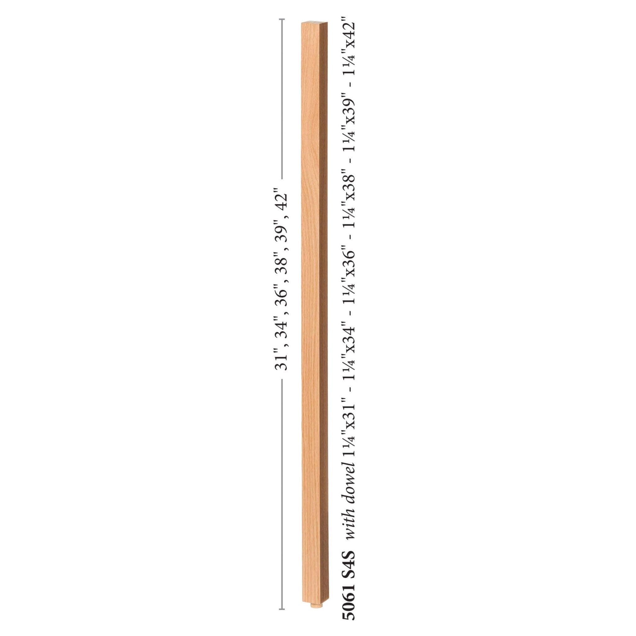 H5061 -Contemporary 1-1/4" 5061 Plain Square Top Baluster w/Dowel (stocked in Red Oak and Poplar)