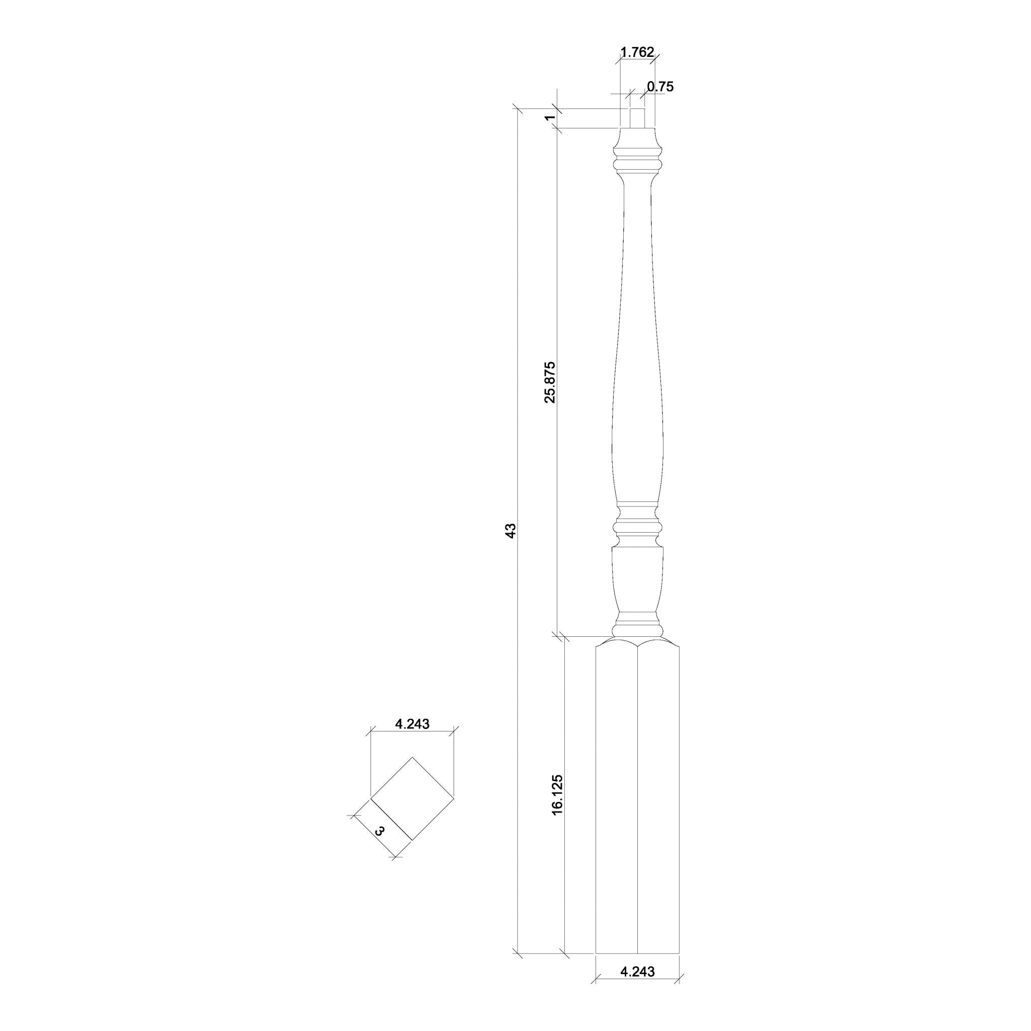 H4710- Georgia 3" x 43" 4710 Pin Top Turned Newel (stocked in Red Oak, Poplar, and Soft Maple)