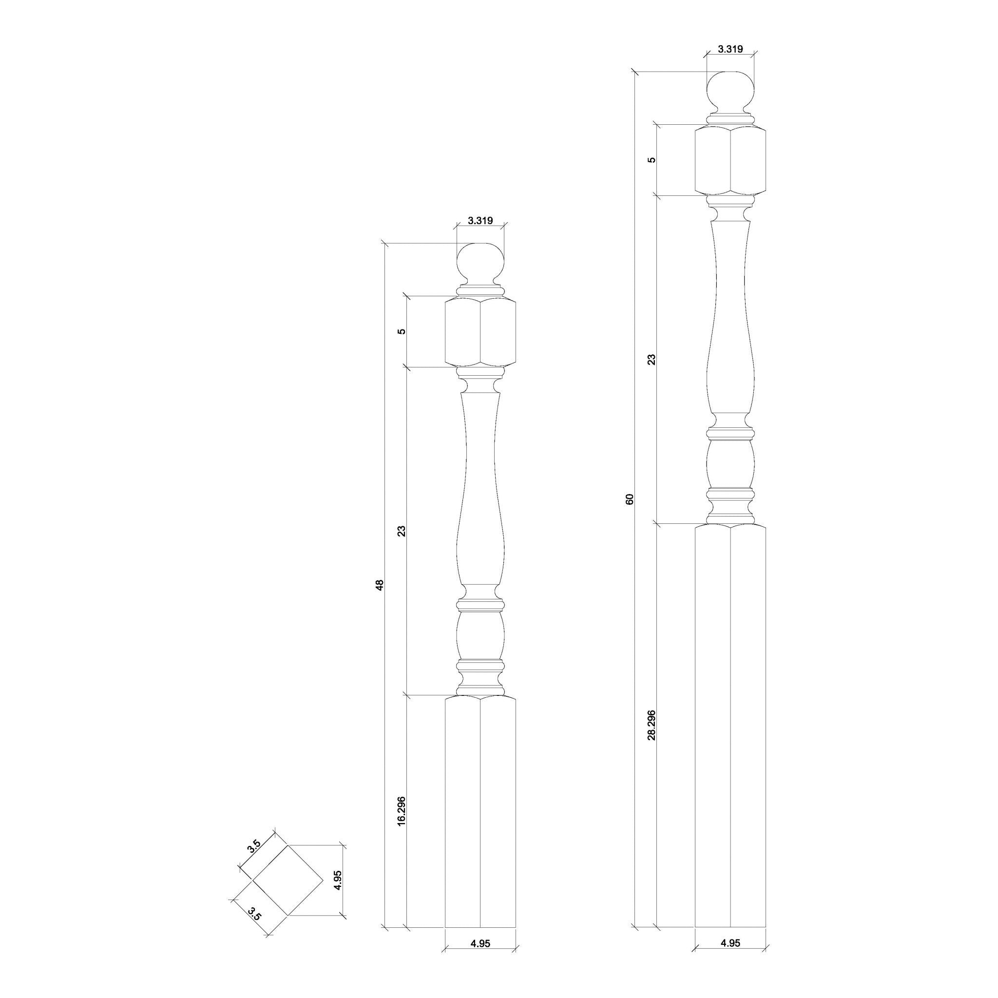 Note: All of our 3-inch and 3.5-inch newels are made from laminated wood blanks (usually 2-4 pieces of wood), which is standard practice.
