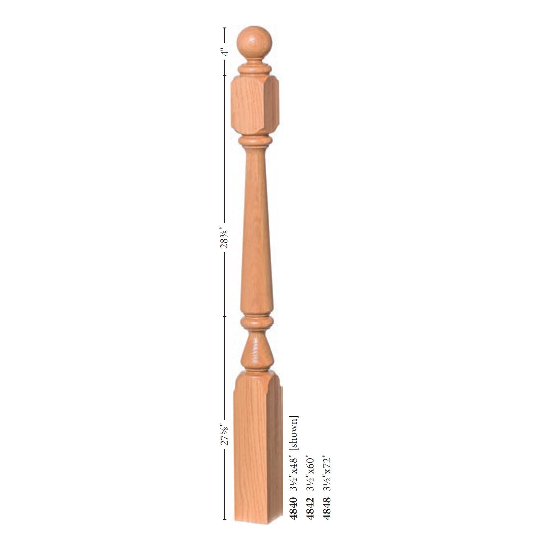 H4840: Ohio 3-1/2" x 48" Ball Top Turned Newel